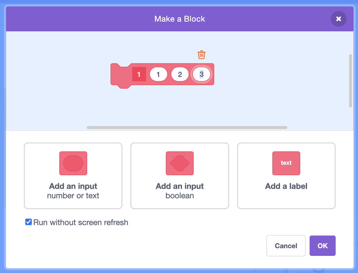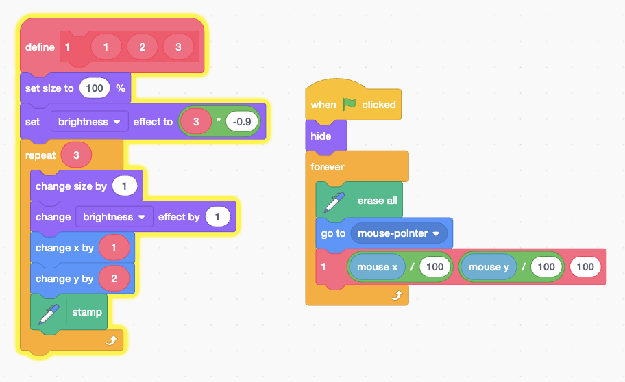 When creating a pink block: