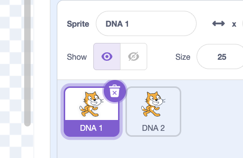Create 2 types of sprites — DNA 1 and DNA 2,